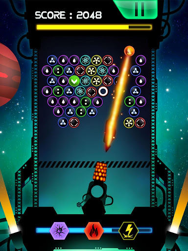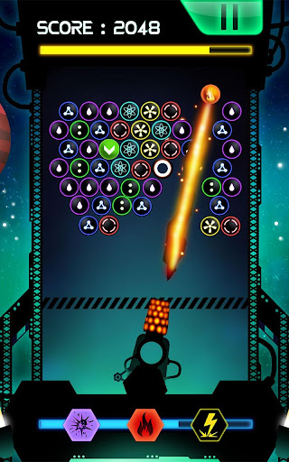 Bubble shooter: Galaxy Defense is an arcade and reflexion game in which you must direct a huge canon in order to make different colored bubbles explode. Each group comporting at least 2 bubbles will explode if it enter in contact with a third bubble of the same color. Chain explosions as fast as you can to get a fury mode and use your magical powers to earn a lot of points.