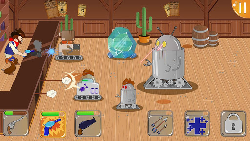 You take control of a cowboy put in front of the most absurd situation of his life: a robot invasion.