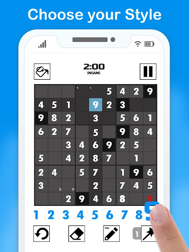 Pick the difficulty level your prefer: you can choose from the easiest one (Easy mode) so you can train your brain, and solve the puzzles with a simple level of logic and memory, but you can also choose the Hard / Very Hard / or Insane modes to give your mind a real workout (for sudoku pro / expert). Our classic Sudoku puzzle game has a lot of features that will help you to solve the grid if you need: You can have help with hints and auto-check. It's your choice to use them or not to complete the puzzles depending on the difficulty of the challenge you are looking for.