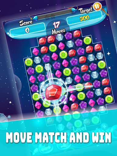The trademark gameplay is here, but this time it is all about matching the space inspired jewels! All you have to do tap on your screen in order to match at least 3 jewels and diamonds with the same color, complete the target that is required of you, watch your moves and make high scores. This unique gameplay has simple rules and controls, but it can hook you up to your device for hours!