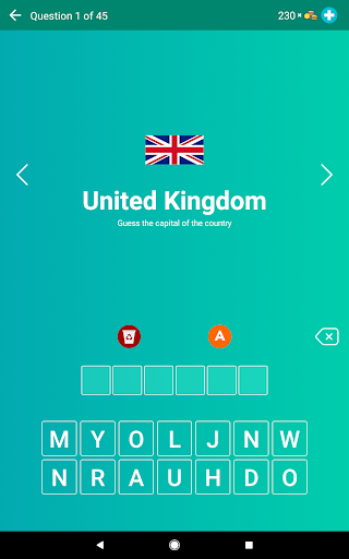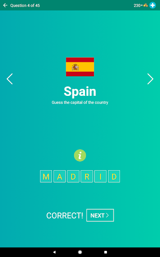 ✩ Almost 200 questions. The game contains all independent countries.