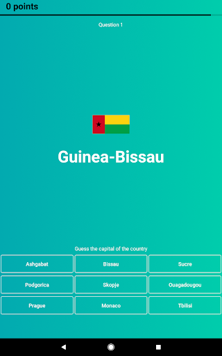 • The "Guess the Capital" mode with multiple-choice answers.