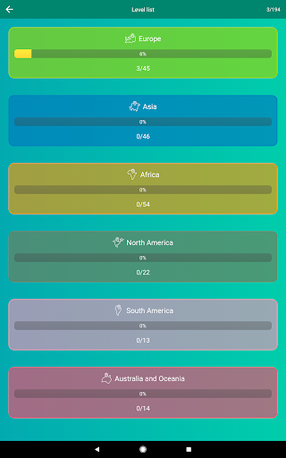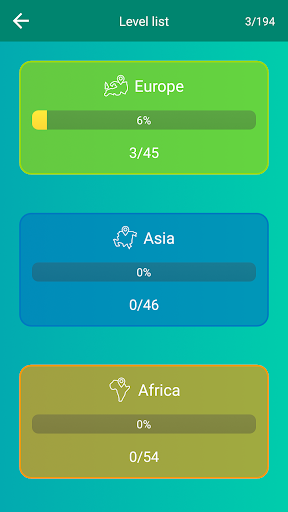 ✩ The application has statistics about the game completely and about each continent — find out your strengths and weaknesses in geography.