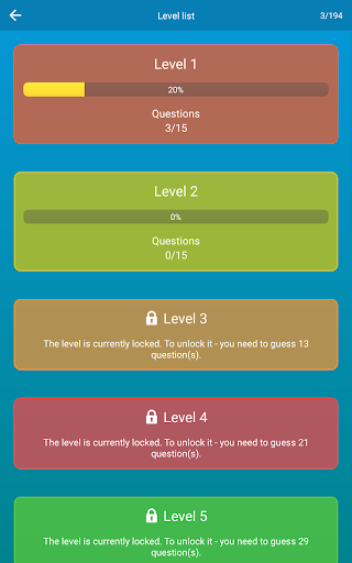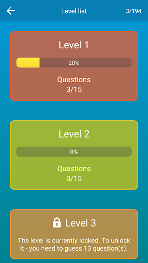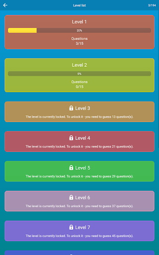 In total, the game has 3 fascinating modes with 13 levels in each. These are almost 600 questions!