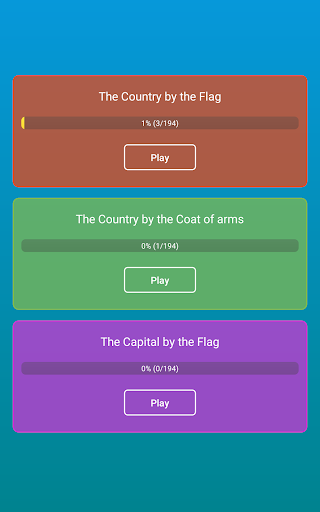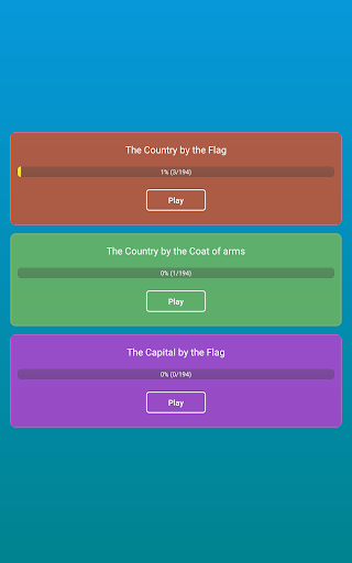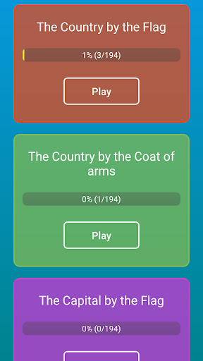 📍 3 game modes which will help you to learn the flags, emblems and capitals of countries.