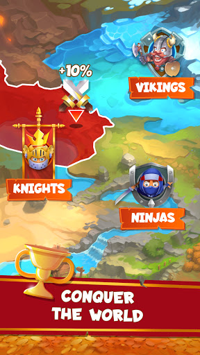Choose one of the 3 clans (Ninjas, Knights or Vikings), become king of your clan, and then conquer the rest of the world with your clan friends.