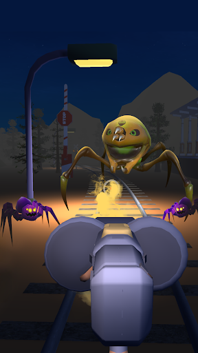 With the horror spider theme, you can experience thrilling of being chased by ferocious monsters. Run and kill all the spiders from the village. You need to be alive to the station, refill goods and complete your mission. You can gain skills, that will help you to achieve victory, and you can also buy/upgrade other weapons. After finishing each game, you gain experience and money. If you can not be alive in the game, you will return to the station and prepare once again to eliminate all the monster spiders. Become the best hunter in the Spider Train: Survival Shoot. Dive into the new horror gaming experience.