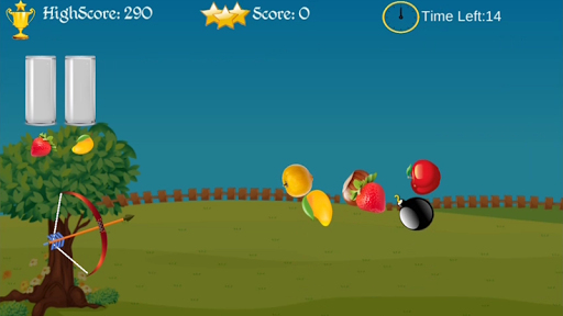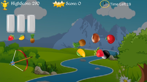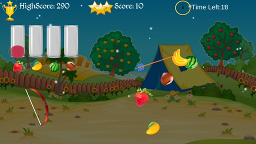 The goal of Fruit hunting with a bow and arrows game is to shoot the rotating fruits which increase your score.
