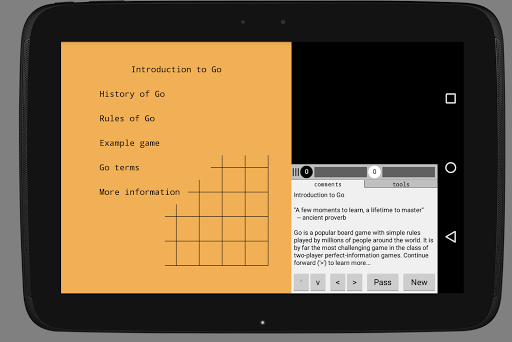 - Full featured SGF reader/editor (perhaps the only Android app to support all properties in SGF4)