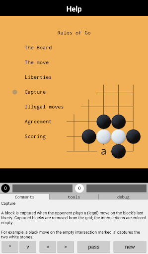 If you are new to the game of Go, an introduction as well as some links to more information is included in the help (but only available in English).