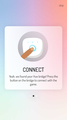 - Step 2 - As soon as your Hue bridge is detected, you need to connect it to the app by pressing the big button on the Hue bridge.