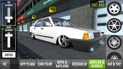 Modified options. You can access the modified menu from the modified button in the menu. Air suspension, coilover options to adjust the height of the car as you want. You can also choose standard springs or 3.5cm and 5cm coil springs. With more than 20 rims in the rims section, you can adjust the camber. Use the camber menu on the left to give your car the wheel you want. The Paint and Skins menu has many finishes that you can apply to your car. Finish your car with plain colors or military camouflage pattern foil. You can apply 1-2-3-4 window films or color glass films from the window films menu to the tofaş car. You can also use your car in a carbon pattern and more than 20 spoilers (spoiler) to choose what you want.