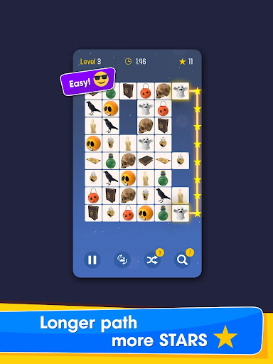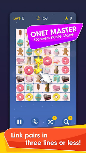 To play this puzzle game you need to find matching picture tiles and connect similar pairs with no more than 3 lines. To complete a level you have to remove all pairs of tiles before the time is over. It might seem like an easy puzzle game to solve at the beginning but as you pass level by level you will need to master your skills and become an onnect expert.