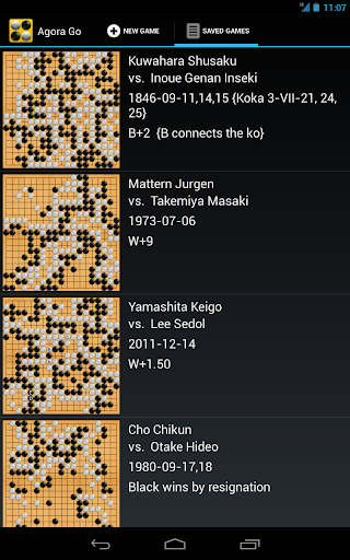 Agora Go is designed for 2 players playing on the same device. It also allows to import files using the SGF format, a standard to store Go games and problems. SGF files can be imported the web, emails or the local storage.