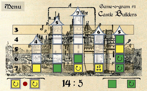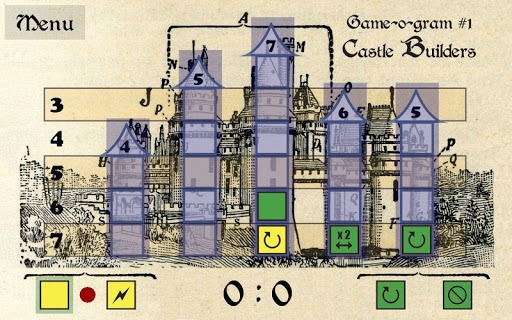 Castle Builders is quick board game where players are competing to build most important places in new castle. Players use various build gaming pieces to directly build castle and special gaming pieces to damage build efforts of opponent.