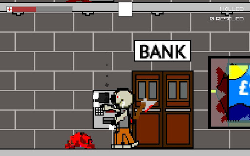 A mall has been overrun with zombies, navigate through the different floors, collecting items to help you defeat the zombies and save the hostages that are still alive.