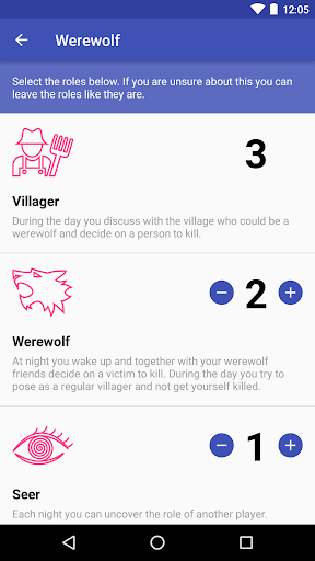 If you want to play the party game Werewolf (also known as Mafia), but all you are missing is a set of cards and you don't feel like using pen and paper, this app is for you. Simply configure how many players are participating, which roles you would like to use (e.g. how many werewolves etc.) and off you go. You will then be able to hand around your device and each player can tap to see their role.