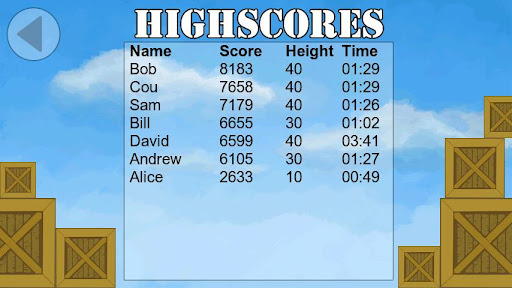 Main goal is building stable construction with maximum height using wooden crates. Also try to build tower faster and you will get time bonus. Restrictions of free version: no stars on stages