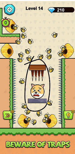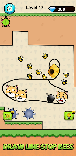 Save the dumb doge: Drawing Rescue is a drawing rescue puzzle game. You draw a line with your finger to create walls to protect the doge from the bees in the hive. During the bee attack you need to paint to save the dog with the painted wall for 10 seconds, hold on and you will win the game. Use your brain to save the dog.