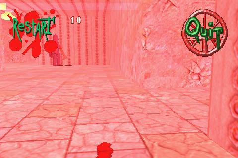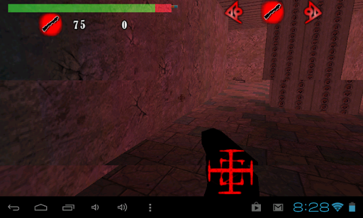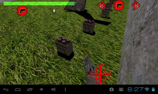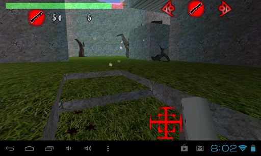 The three buttons at the top of the screen are for switching weapons and the one at the bottom is for shooting. Hitting the “settings button” will bring up options (only while playing) and the back key just works as you would expect it to.