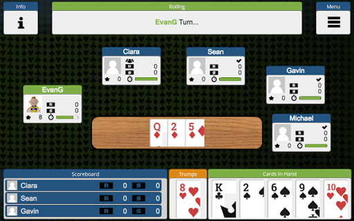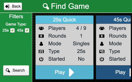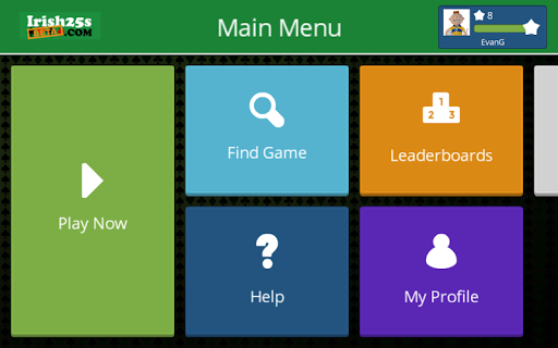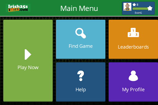 The Irish25s app allows you to play 25 and 45 card games online against your friends or computer opponents using a simple easy-to-use interface.