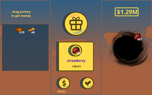 To get money, collect food and feed it to your character!