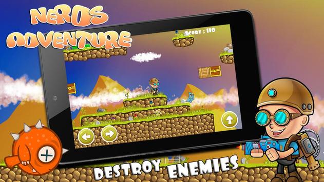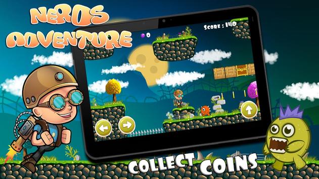 Nerds Adventure - colorful arcade platform game, where you as a nerd in glasses should pass through many challenging levels. Crowds of monsters and deadly abyss will appear on your way, but the dexterity of your fingers should help you to overcome all these difficulties! In this game you will find everything that fans of platformer need: kind geek character, interesting levels with a bunch of platforms, coins and chests, and bonus weapon that will help you deal with the monsters.