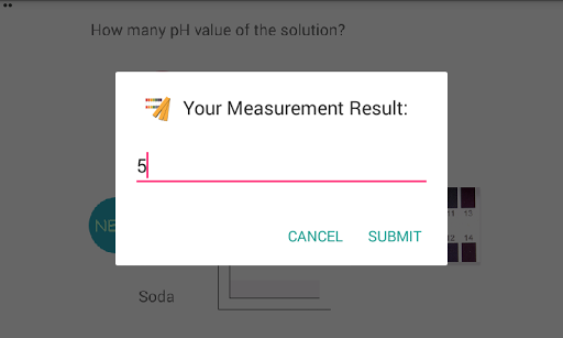 This app is simple simulation how to determine pH value of the solution, based on changing the pH paper color. Basically pH paper dipped into the solution, the paper will be changing the color appropriate the pH value itselft. Please try to guess the pH value at every solution by matching the changing color with the reference pH color beside it.