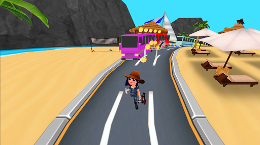 Start running when you hear the police whistle! The farther you run, the better you'll be a surfer. Go ahead, run!