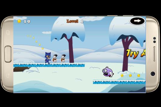 in this game you can run and jump with pj super mask to fight dragons and skip the hard obstacles with collecting coins as possible to save the noddi.