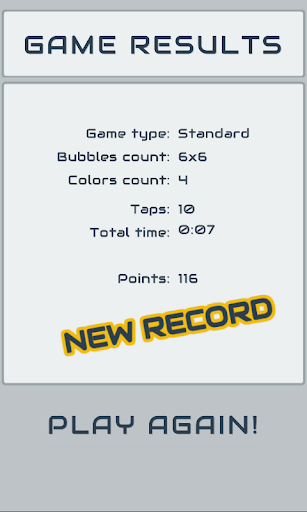 Similar to Tap Limit Mode. There is unlimited bubbles count. After removing a group of bubbles, flying bubbles are moved down and the empty spaces are filled with new ones. The game ends after 2 minutes.