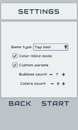 There is also color-blind mode, when bubbles are distinguished by watermarks with shapes.
