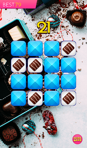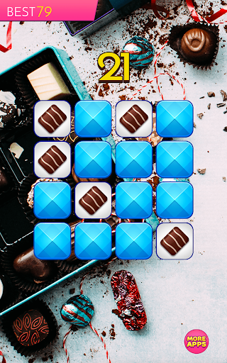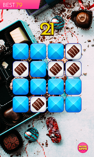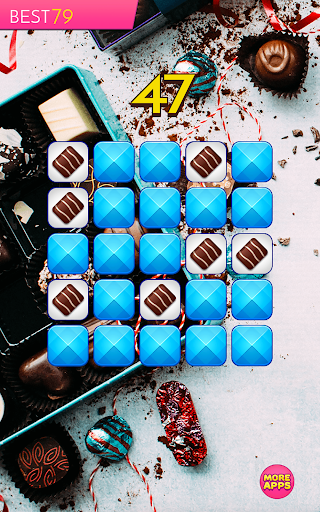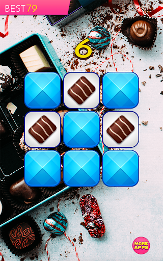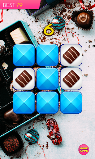 Can you memorize and recreate pattern of tiles with sweet chocolate candies on 3x3 board? Can you do it on 4x4, 5x5 and 6x6 board? You have only one second to memorize a pattern. Looks simple? But is quite difficult. So, take a challenge and test your memory in this addicting brain teaser!