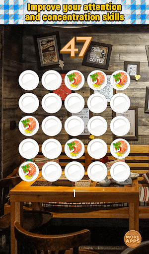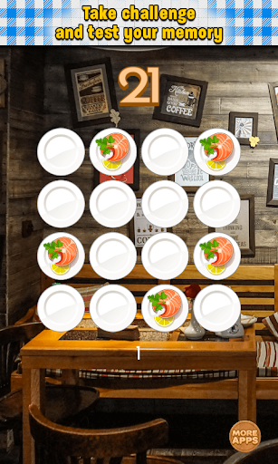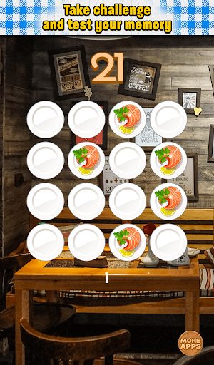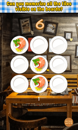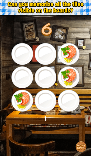 This is one of brain teasers which help you train your short-term memory and visual memory. Can you memorize all the tiles with tasty food on 3x3 board? It's simple! So maybe you try do this on 4x4, 5x5 and 6x6 board. Quite difficult, right? Are you ready to take challenge and test your memory?