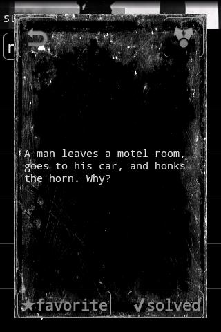 Very far fetched answers- party game or not... deaf wife in a hotel room? Leper colony? Fire hose on a mine... who writes this stuff? Also... horrible scroll bug with screen repaint and showing "trails"