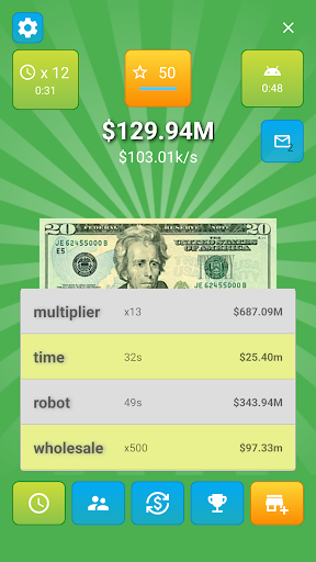 Classic clicker with images of money. Start with a penny and work your way up to $100. Level up and add more coins and bills to become a billionaire. Level up. Change currencies, among others: USD, EUR, GBP, PLN, CNY. Invite your friends to play. They increase the multiplier per click. In addition, you can see how much your friend earns per second.