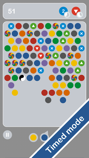 The classic game's objective is to pop three or more bubbles of the same color. The more bubbles you pop, the more points you score. After three tries without points, a new row of bubbles appears at the top of the game screen.