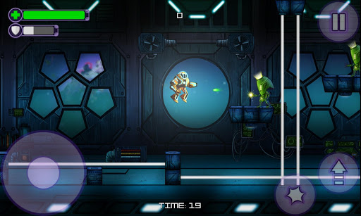 Help Rambot reclaim his planet in adventure bringing reminiscences of the best titles from the golden age of platform games. 32 levels awaits you with harder and harder levels places in 2 worlds - on Rambot's planet and on the alien mothership.
