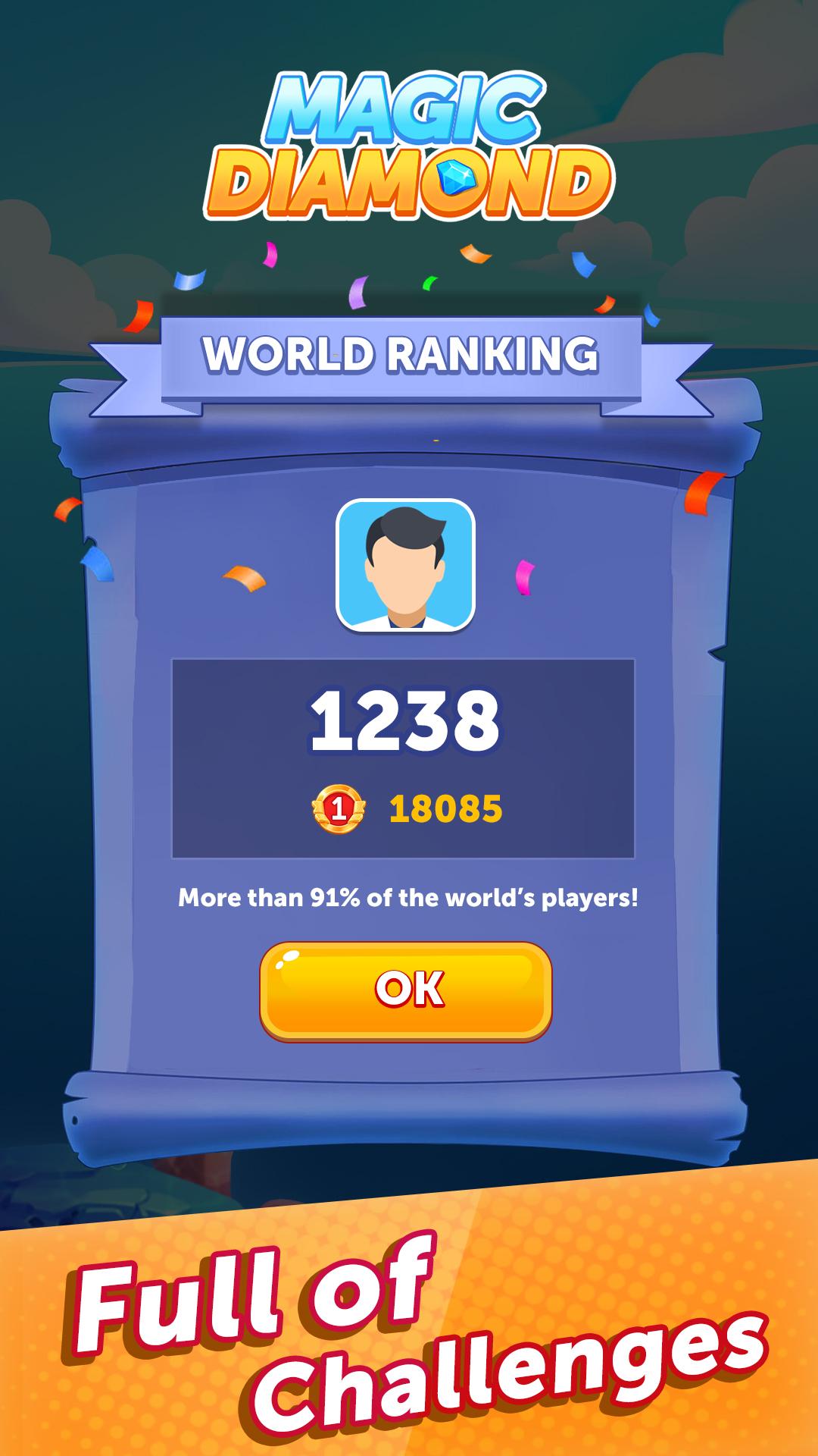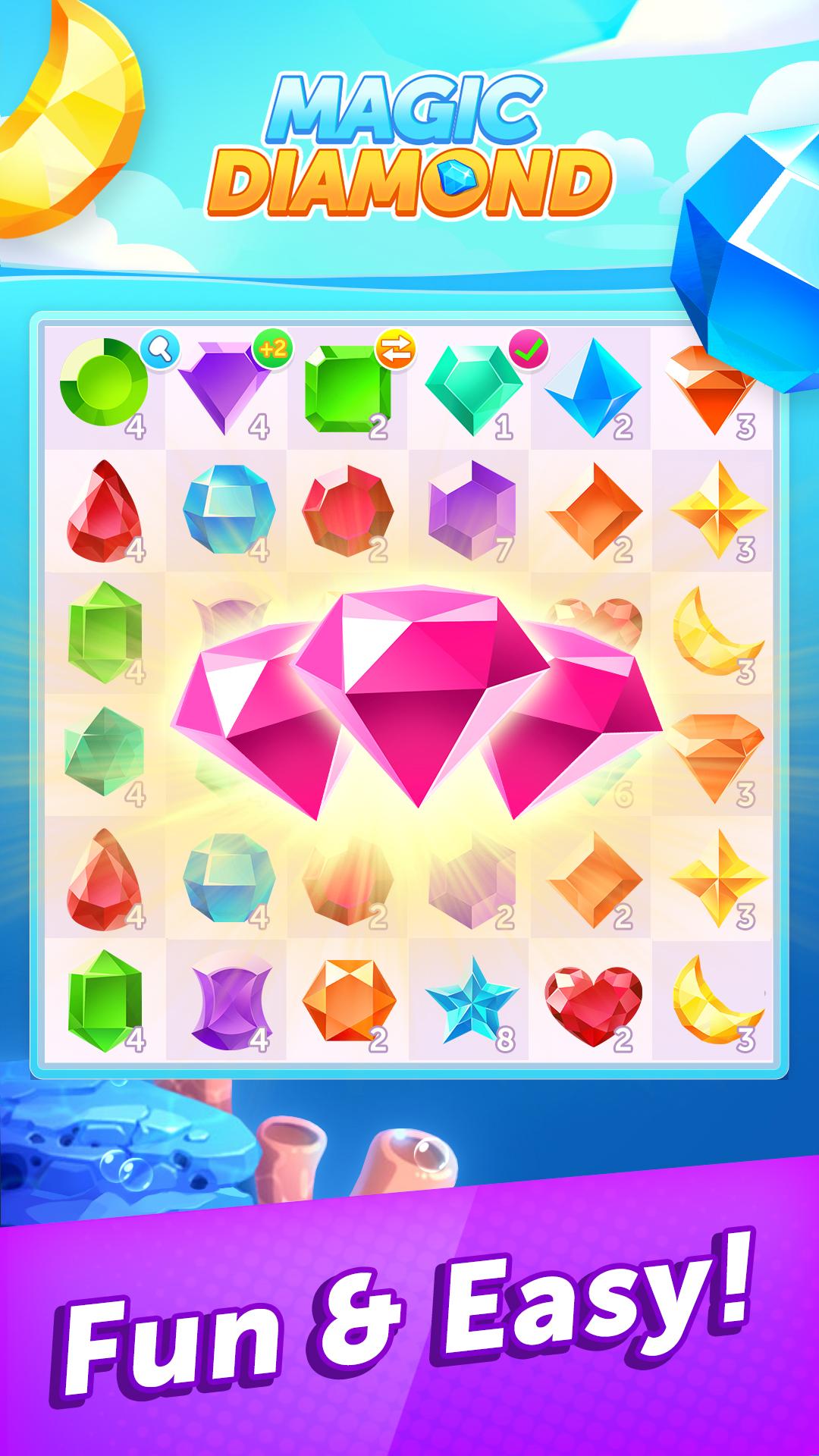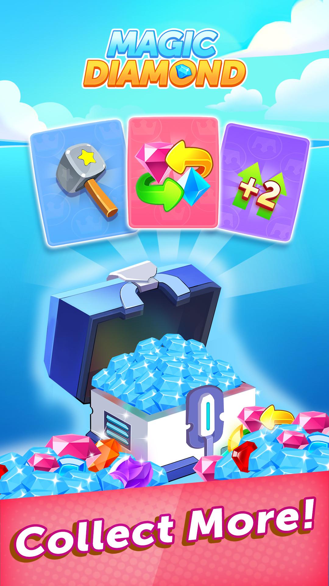 Introducing Magic Diamond - a fun and addictive puzzle game that will keep you entertained for hours. In this game, your goal is to slide and match the same types of gems to create new and powerful ones. With its stunning graphics and challenging gameplay, Magic Diamond is the perfect game for players of all skill levels. Key features of this game include an intuitive interface, multiple levels to conquer, and different game modes to choose from.Download Magic Diamond now and start merging those gems!