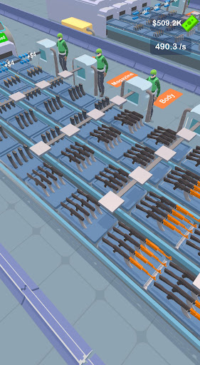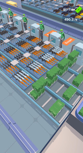 Welcome to "Weapon Factory" - the ultimate weapon crafting game where you get to build a range of weapons with the help of your soldiers and robotic arms! As a player, you'll start with a basic production line consisting of a belt and a few soldiers who will start crafting weapons. Your goal is to produce different types of weapons, ranging from pistols to tanks, and earn as much money as possible.