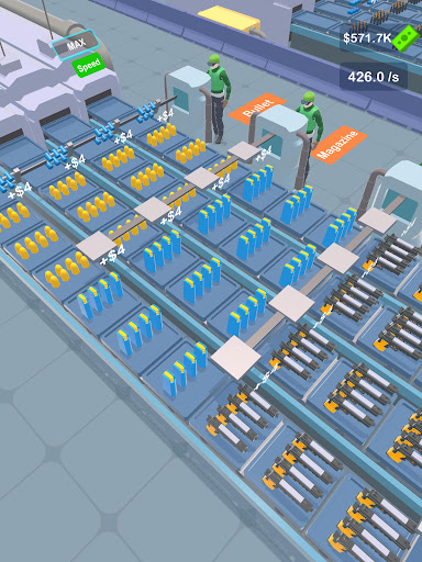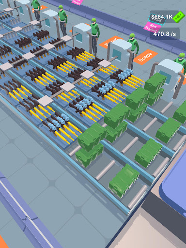 - Unlock different production belts to craft different types of weapons, from pistols to tanks.