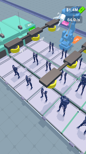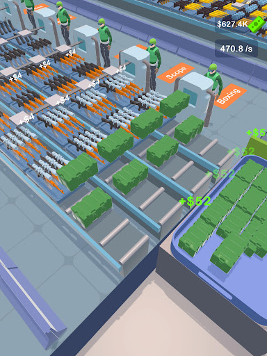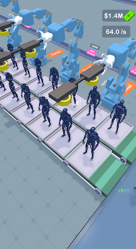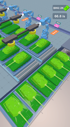 - Upgrade your soldiers and invest in robotic arms to increase production speed and efficiency.