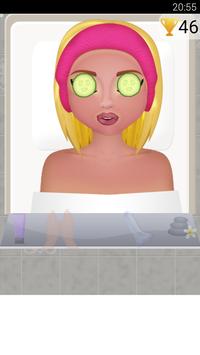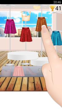 shop in makeup and fashion store and pay with the girl for all items: lipstick, eye shadow, blush, shirt, skirt and shoes.