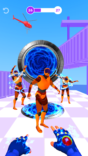 Portal Hero 3D is a new action hit master game where you should defeat your rivals and show your ability to relocate them to other worlds through portals. Challenge yourself in an epic Portal Hero 3D casual game. Once the game starts, a huge crowd of robots and aliens will attack you and all you have is a magic glove able to move your enemies out from our planet. Shoot with your glove, generate portals and defeat 'em all in action hit master game.
