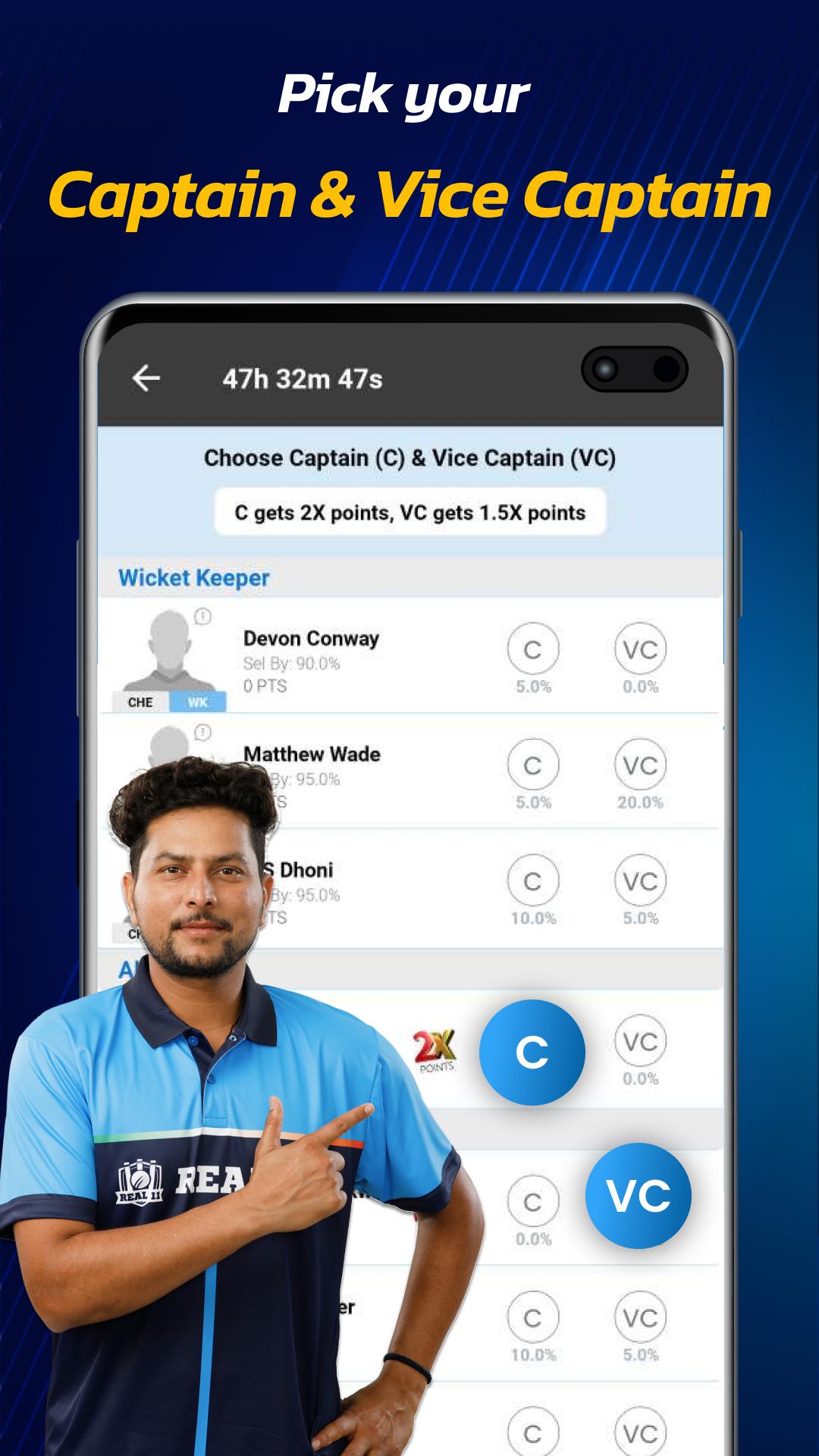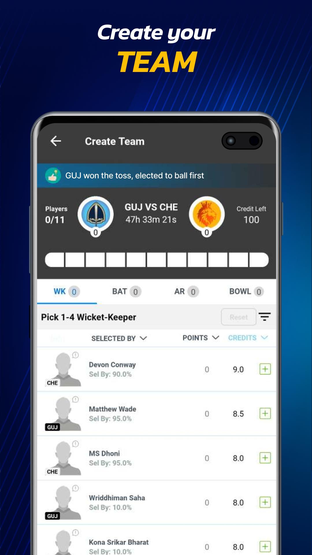 Take your love for sports to another level with Real11’s fantasy cricket, fantasy football, and fantasy Kabaddi contests. Test your knowledge of the sport, build new tactics and play with other users or challenge friends and family members for a game. It's as easy as ABC to play fantasy cricket. All you have to do is select an upcoming match, create a dream team from players of two real teams competing in a real-world match, and join a contest!