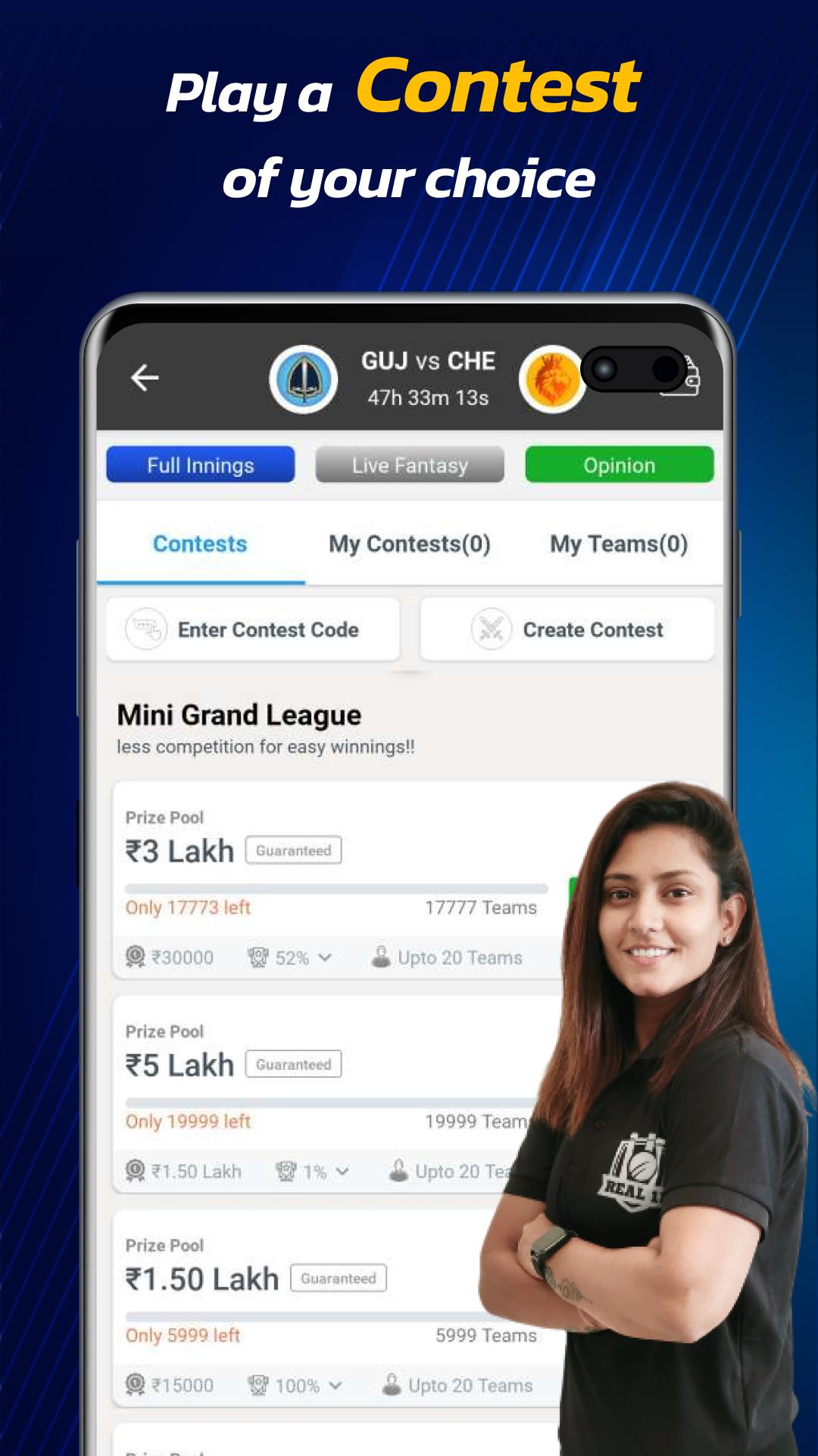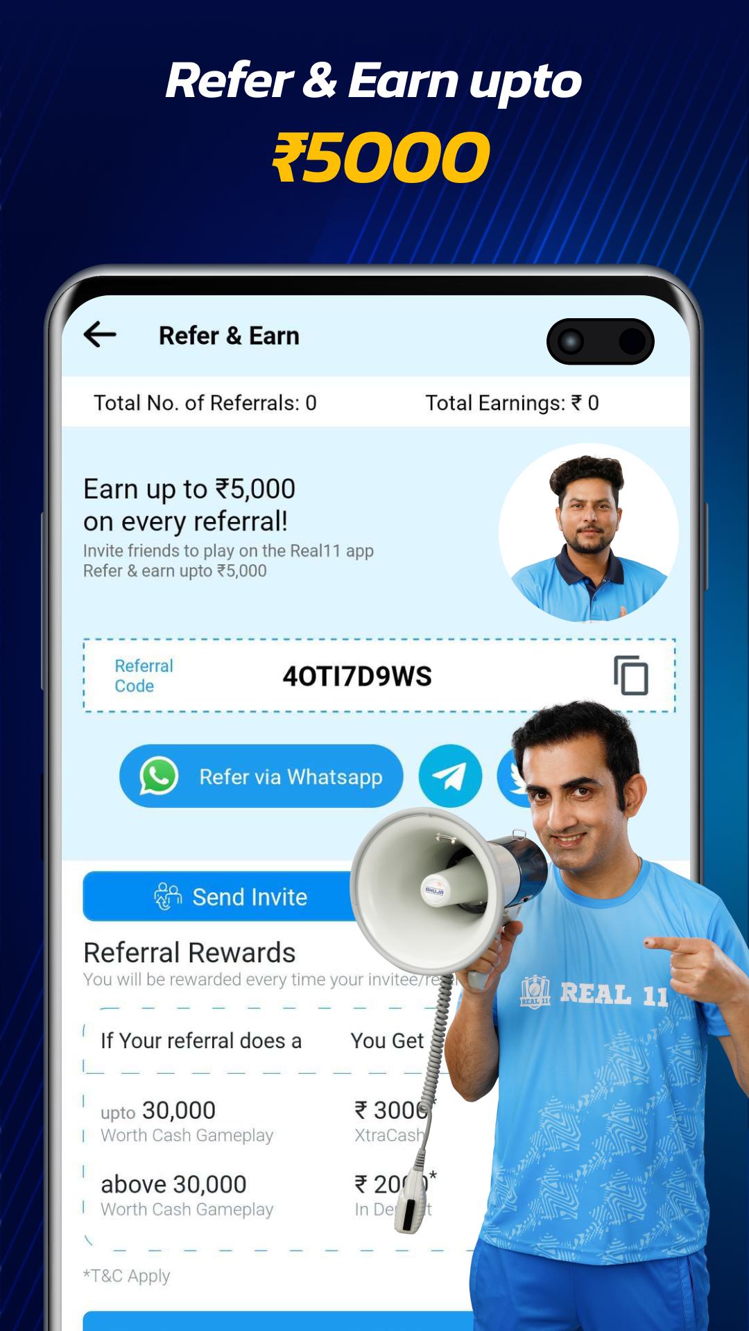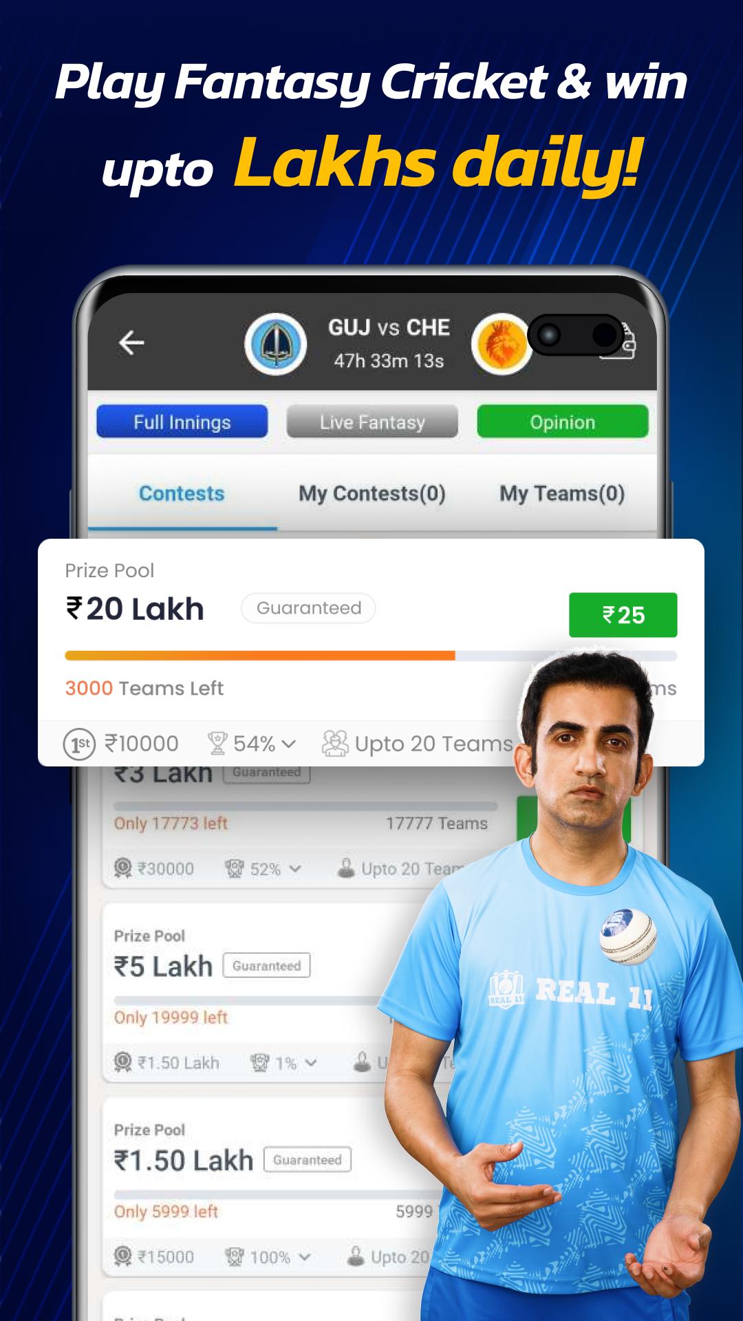 Real11 is a one-stop destination for all your favourite fantasy games like cricket, football, kabaddi, etc. The app features several contests in which players of ages 18 and above can participate and win prizes upto lakhs.