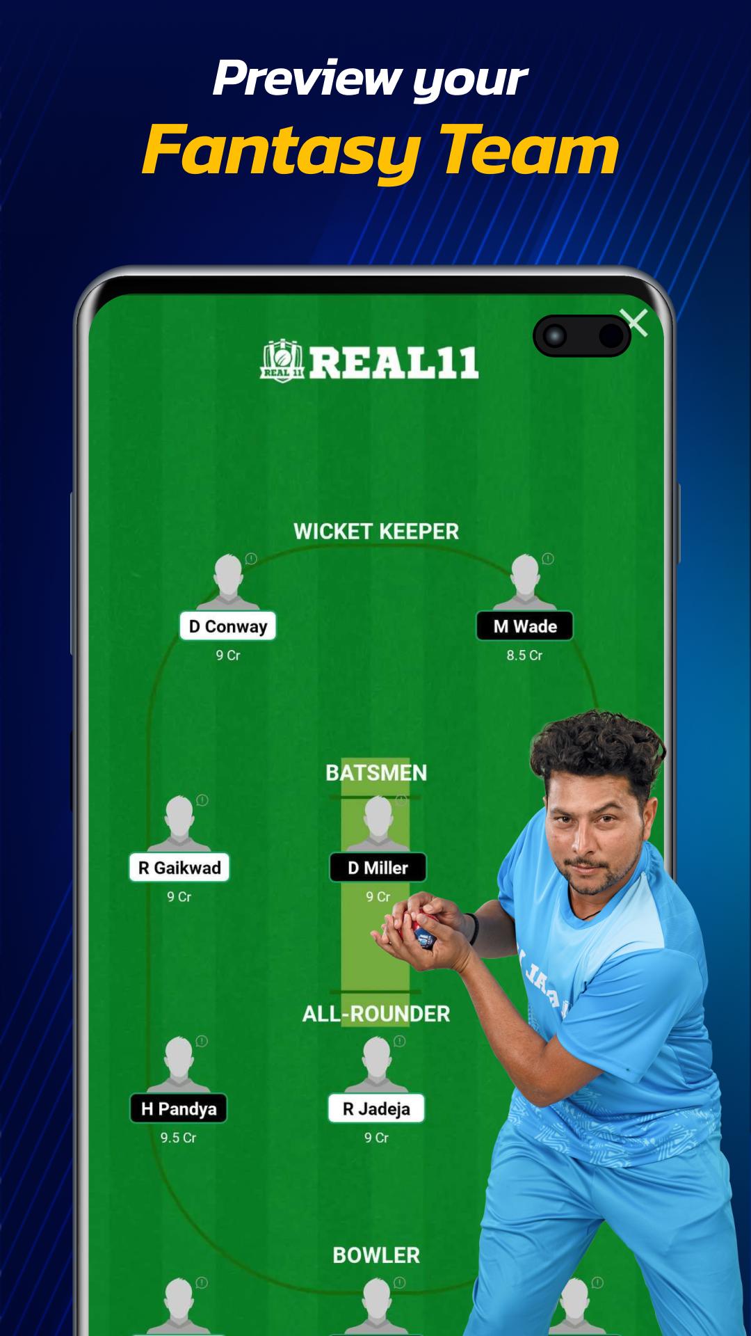 The fastest growing fantasy sports platform is now available on Play Store. Customise your playing experience within the fantasy sports realm with Real11. Play fantasy Cricket, Football and Kabaddi Leagues without any hassle.