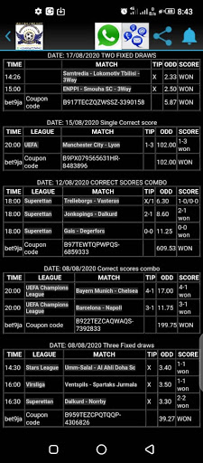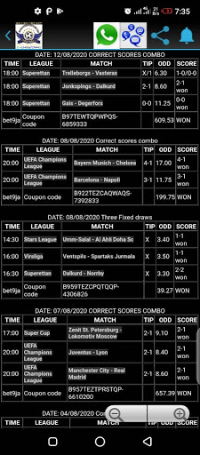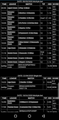 * 3-5 tips every day in our Correct Score app. The average monthly success rate is 96% or 99%. Daily +500 odds bet tips.