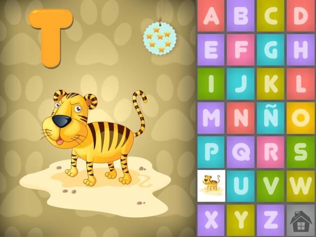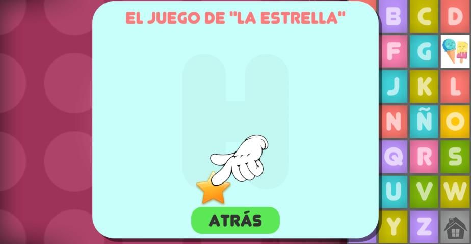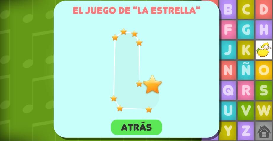 Cada letra tiene un juego interactivo de «Estrellas» para reforzar el aprendizaje.
