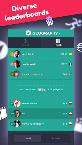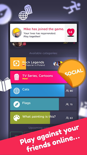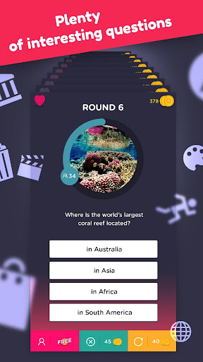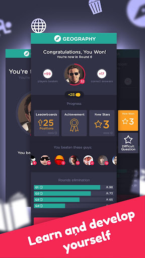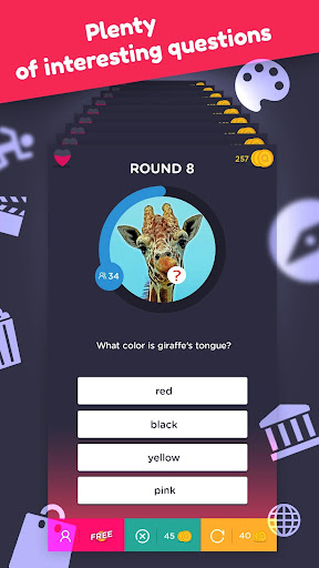 In this game, everything is happening in real time. Here you have a trivia game for real social beings! Have you ever tried playing real time against more than one friend? Or even 99 of them? You may join any accessible category room to meet your opponents from all over the world and quiz them out of there!